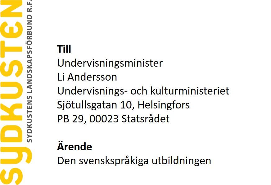 Bakgrunden till skrivelsen till undervisningsministern är regeringsprogrammets avsikt att på ett övergripande sätt utreda den svenskspråkiga utbildningens särdrag. Det finns många frågor att utreda men gruppen vill med skrivelsen framföra några gemensamma synpunkter främst på personaltillgång, kvalitet och jämlikhet i utbildningen på svenska.